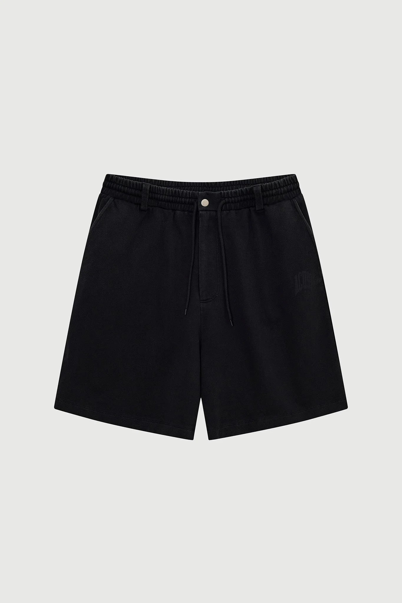 Pantaloni in cotone nero con una trama ricca e irregolare e un carattere di superficie grezza. Un essenziale in forma rilassata.
