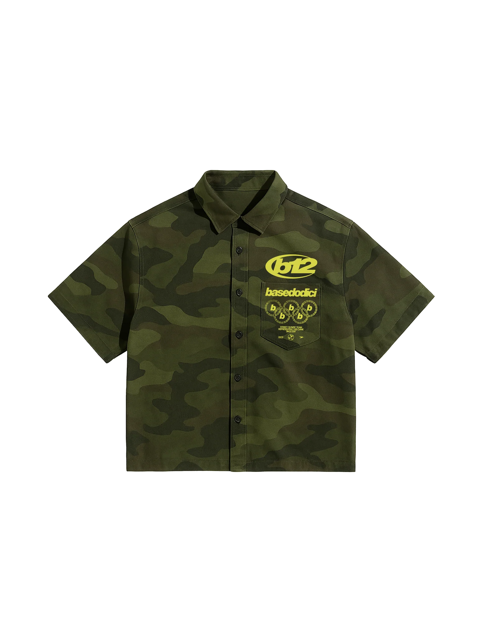 Camicia a maniche corte Boxy Fit, stampa serigrafica nel fronte.