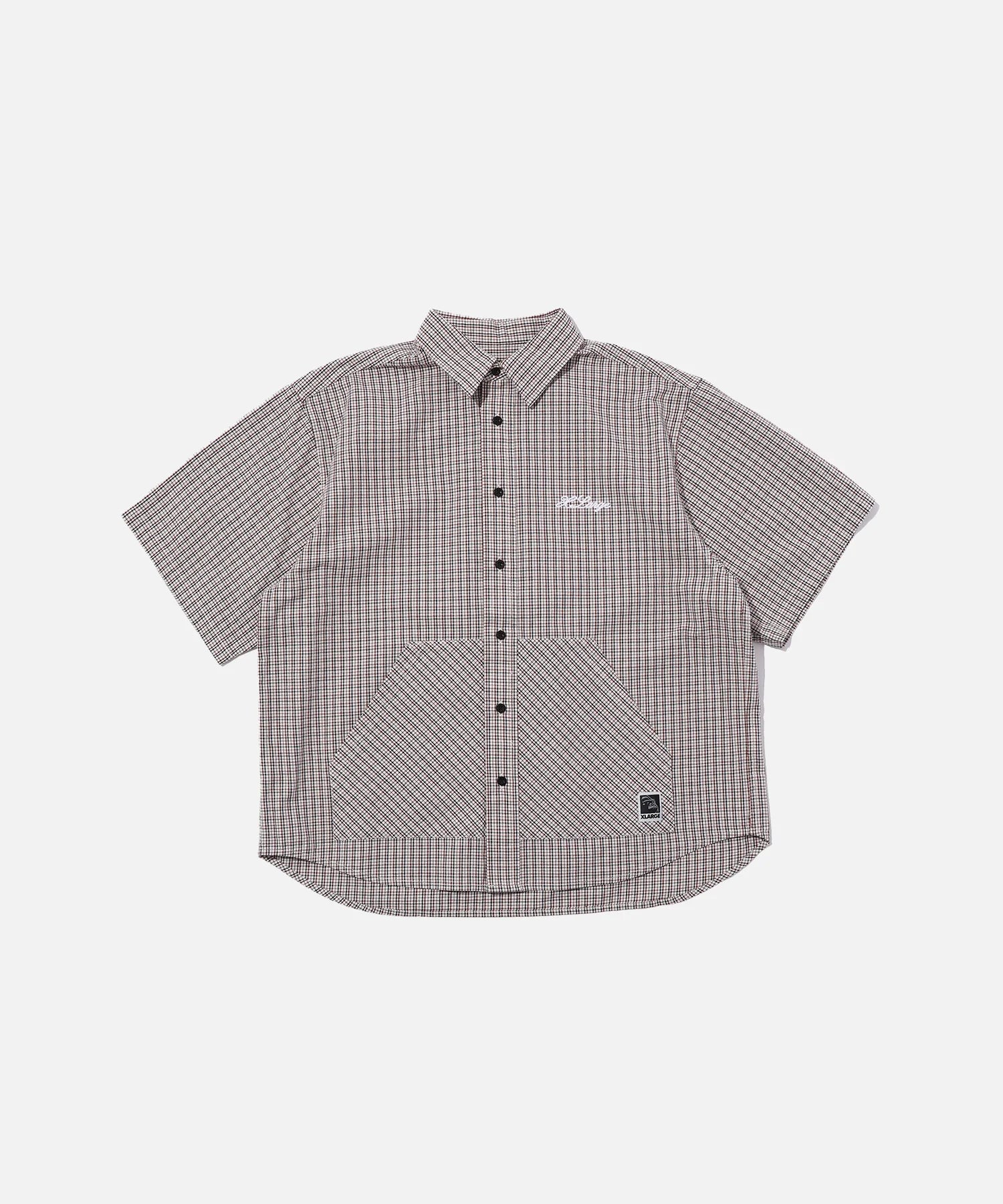 Camicia a maniche corte abbottonata con tessuto a quadri, con una tasca frontale unica. Il logo corsivo originale di XLARGE posto sul petto. Può essere acconciato sovrapponendo con altri capi.