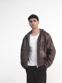 La GIACCA IN PELLE CON CAPPUCCIO in marrone vintage è realizzata con un guscio liscio in PU e una morbida fodera in viscosa per comfort e struttura. Progettato con maniche raglan per facilità di movimento, presenta una cerniera YKK di alta qualità e una toppa in metallo RETERNITY come un sottile dettaglio distintivo. Rifinita in una vestibilità squadrata e corta, questa giacca combina un look di ispirazione vintage con proporzioni moderne.