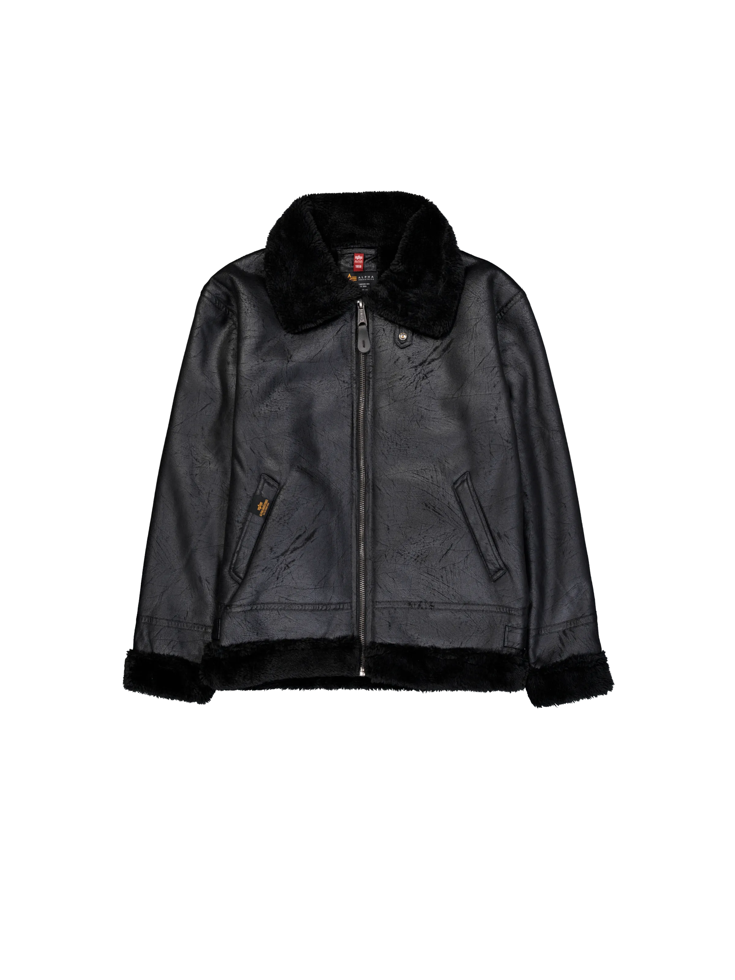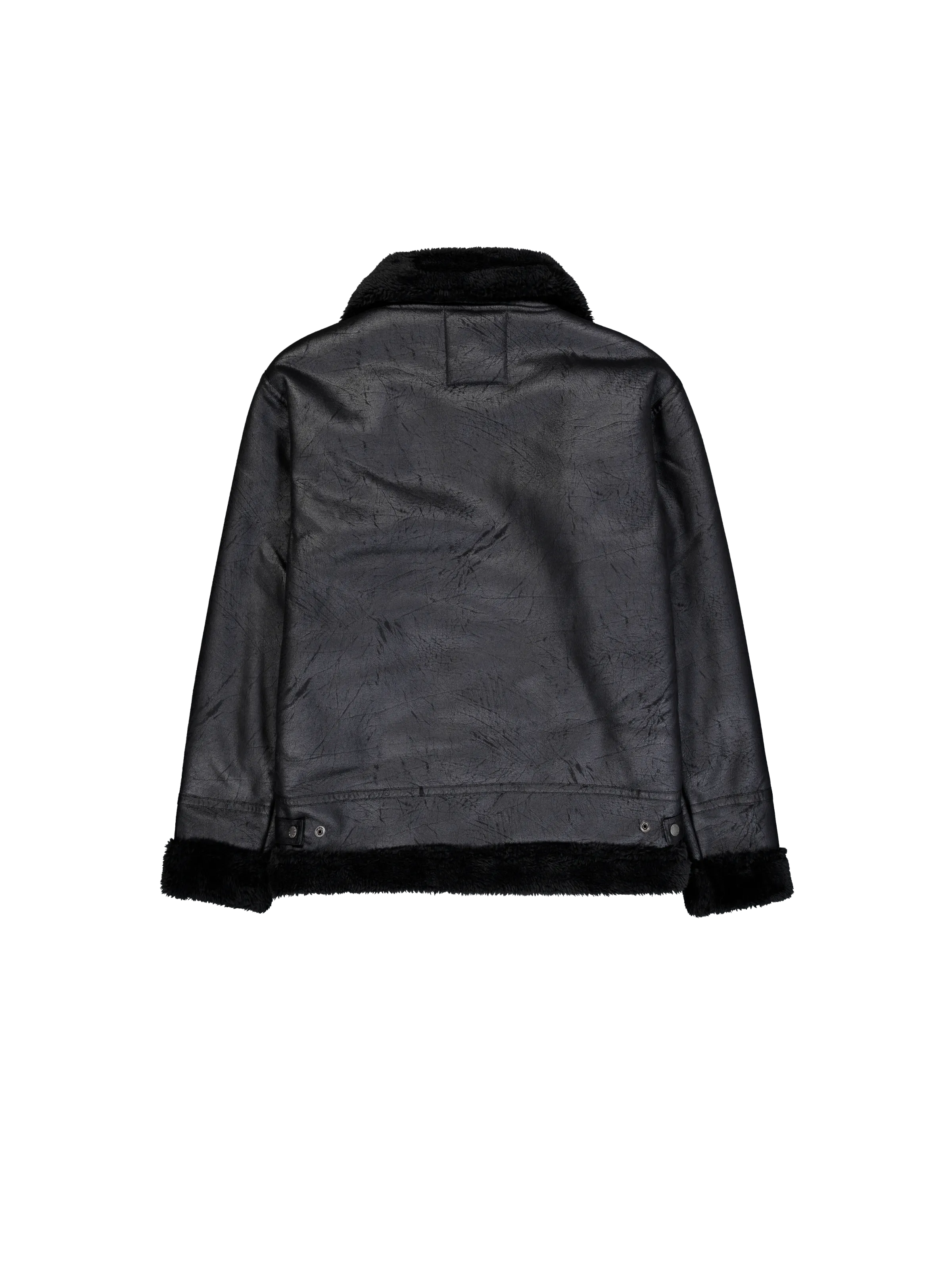B-3 Faux Leather Bomber Jacket Black/Black