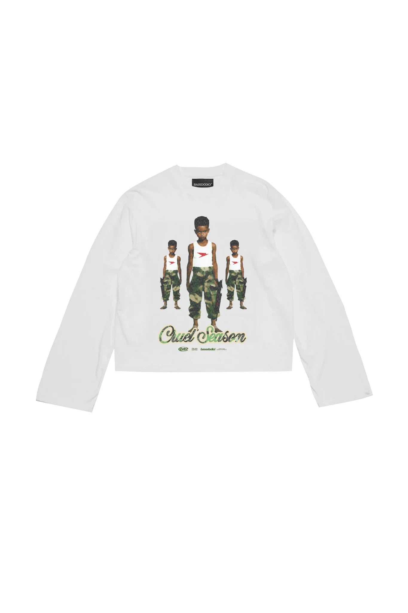 Crewneck relaxed boxy fit, stampa serigrafica sul fronte caratterizzante la collezione "CRUEL SEASON" by BASEDODICI®️